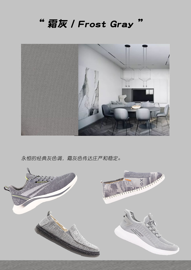 灰色系代表色,符合深秋的內(nèi)涵高雅,也是時尚色彩不可缺的必有色彩。