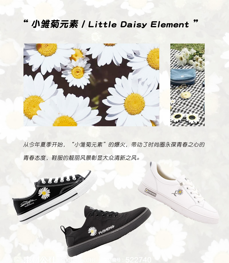 從春夏開始,小雛菊開始占領(lǐng)時尚圈設(shè)計風(fēng)潮,宣示著青春的活力,保持著不老心態(tài),刮起一陣大眾清新之風(fēng)。