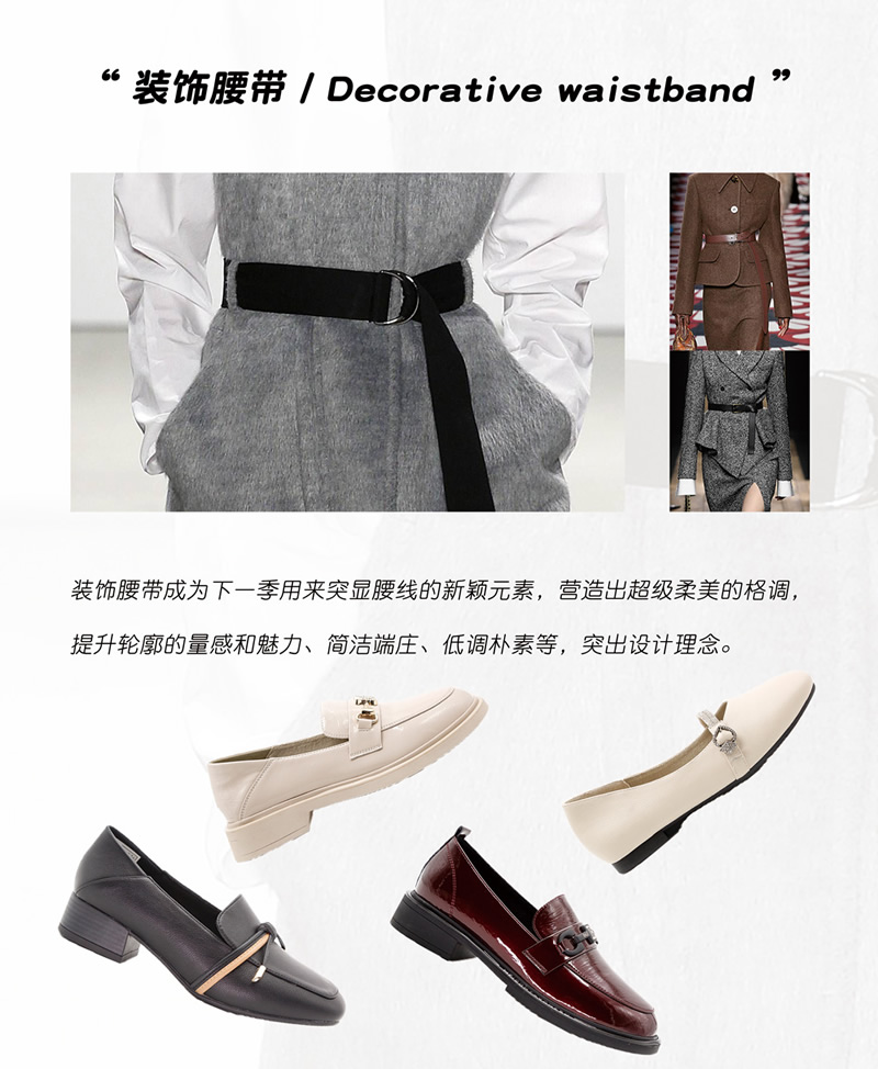 用腰帶裝飾是鞋服行業(yè)的一種新式設(shè)計元素,突出整體格調(diào)美感和氣質(zhì)的展現(xiàn),給予成熟優(yōu)雅的美。